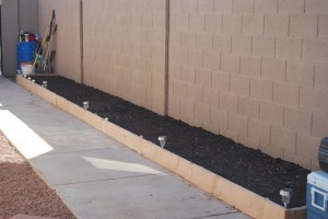 I have been asking (read: begging) for a garden for some time now. Andrew’s dad had a nice one so I know Andrew knows how to do it. Aunt Gloria and Bill have a nice one and when I went to my friend Julie’s house and saw hers and we ate salad with tomato’s from it, that was it! I WANT A GARDEN! So after much whining Andrew finally built me one. He brought someone to help him and they spend 8 hours building this: