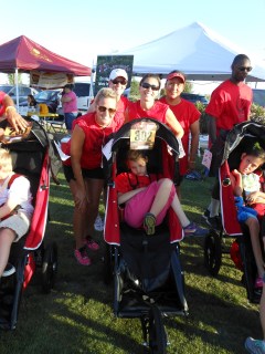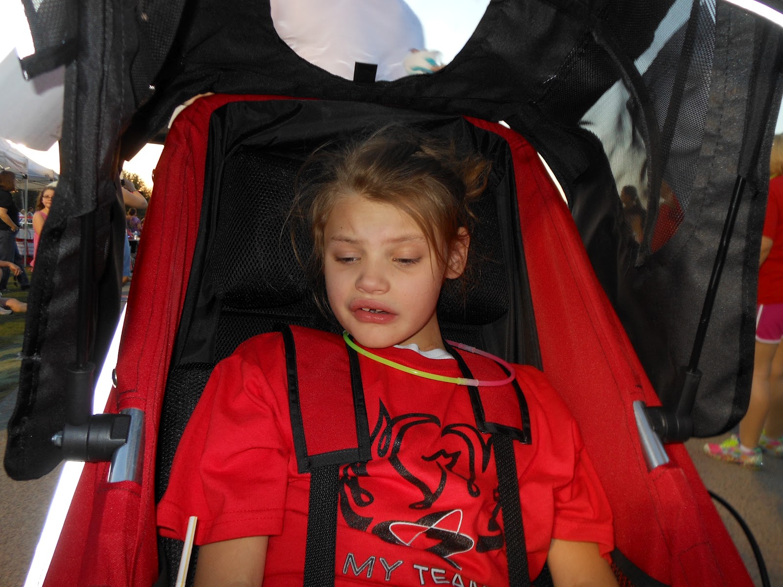 I wanted to post tonight to share about an awesome opportunity we had to have Lily enter a 5k! She was the team captain and had a team of “angels” running and pushing her. I didn’t know much about it, but we were offered and I said sure. It was a beautiful night and I took Oli and Lily out a few miles out of town to a beautiful golf course and we met up with My Team Triumph. The race was benefiting Down Syndrome and it was a beautiful evening, the run was called Glow Run because it was dusk and there were candles and glow sticks everywhere. Lily was teamed up with a great group and we cheered for them along the way. What a wonderful experience! Next time I want to be a part of her team and push her!