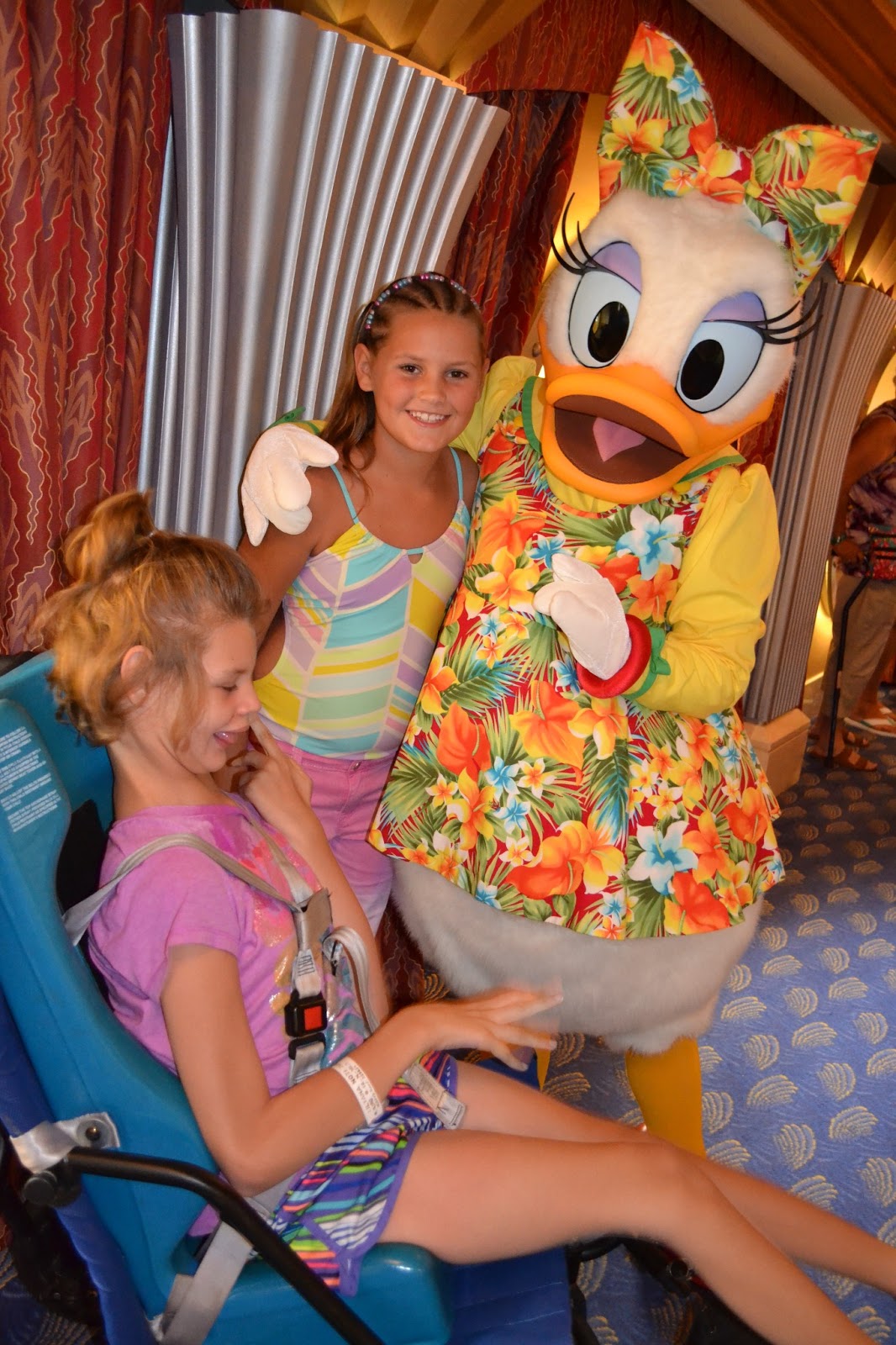 We were too early to get in our stateroom but started to check the place out. Went to guest services to get some stuff squared away (Make A Wish gave us a debit card for food and souvenirs and they gave us a credit to pay for our excursion, but we (obviously) had to give a card so we could you know… mai tai’s? Then went to the Cabanas and had some amazing buffet! Like what the heck, this is all included? It was like Vegas, minus the strippers and add Mickey Mouse! Then the kids swam while waiting for our room and there Andi met another friend straight off the bat, this sweet little southern gal, Olivia, spotted Andi who was standing by Lily and told her she had something in common, that she had an older sister with down syndrome and then they were talking and playing. Olivia, I am pretty sure, thought Andi was older than her almost 5′ tall frame 8 year old body pretends to be because she was 14 and as sweet as she was she was probably looking for a friend who could hang out beyond the Ocearner club level. But Olivia plays a big part in our story. We’ll get back to her later.