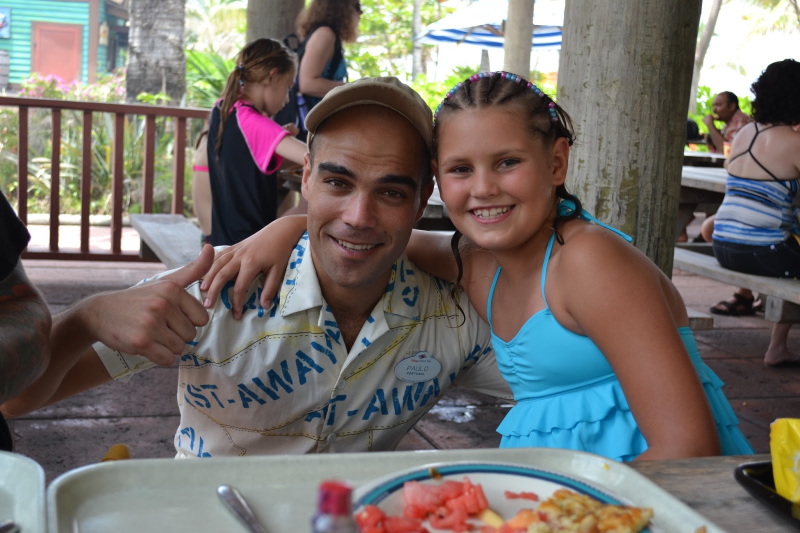 Tuesday was Castaway Cay day. We were given an allowance for excursions and we spent it all on the day in Atlantis and decided to make Castaway Cay day a lazy beach day. Yet Make a Wish surprised us again with all day rentals of snorkeling equipment, rafts and bikes if we wanted. It was exactly what we wanted. A lazy day. Castaway Cay was really cool! Lots of characters there, lots of cool scenery. Lots of places to park your butts and relax.
