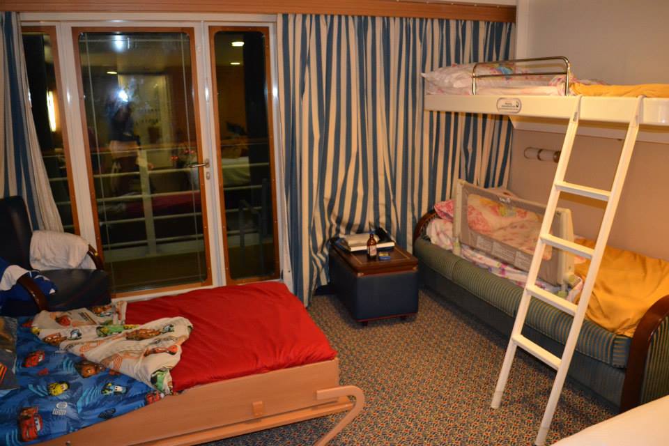 Then after dinner we put the kids (all three) in the Oceaneer Club for an hour or so and Andrew and I walked the boat, got a drink and checked the place out. We went to the spa to schedule a massage that we never got because we were so busy and where Andrew saw they had a sauna club you could pay a fee and the whole time there you had full use of this amazing place with a sauna, special showers that had aromas and names… I really don’t know what they were or what they did, some where called rainforest …. Andrew really wanted us to both get a pass, but I am well… cheap.. AND I knew we had so much planned I might as well have thrown money overboard, but I encouraged him to get one and he did. Then back to get the kids and those crazies still wanna do stuff! Andrew asks if I mind him going to his new found favorite place, the sauna, and I say sure! We are gonna go karoke! Andi’s choice of course! Disney has night club type atmosphere’s for families, it is so cool! They of course have adult only places as well, but it was fun taking the kids to the karoki place. The room only had a handful of people and the kids were begging to sing so since Oliver can’t read yet we decided on Happy Birthday. The DJ said his birthday was coming up so they decided to dedicate it to him. It was hilarious. They have no fear and the whole crowd was cheering. Silly kids. Lily and I enjoyed watching them. Andi says “mom you love to sing!” and I said “only around people who love me unconditionally”. Later we met up with dad while watching Wreck it Ralph, Andrew took Lily and Andi to the arrrrrrr-cade while Oliver and I stayed in the movie until I told him I cannot sit here any longer. I needed toothpicks for my eyes! We are an early to bed, early to rise family and even though we were 3 hours later than our time, I was done. It was almost midnight and we had to be up early for our Bahamas excursion! Oliver said ok and we went back to our room that transformed from one bed and a couch to 4 beds (and the next night our sweet hostess customized the sheets for the kids) and we hunkered down for a few hours.