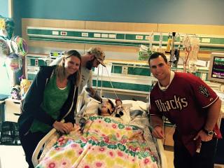 It was looking like we were preparing for a good, productive day but that didn’t happen. Forgive my lack of remembering all that happened I will go by what I remember. It was a whirlwind day, things were nice and quiet, my friend Julie came by, she always makes me smile and I was glad she was there. Not before long AZ Diamondback Paul Goldschmidt and his wife came by. Not sure if you follow baseball or the Diamondbacks but he is a really big deal! Him and his wife were so sweet, he gave Lily a signed doll and posed for a photo. They didn’t stay too long because things were starting to feel a little more serious with Lily. Nurses in and out. Team IV team coming in.