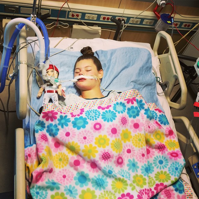 Also after asking multiple times if anyone thought possibly the reason she wasn’t waking up could be due to her being in some sort of status epilepticus they finally brought in an EEG machine to find out. So this guy was doing an EEG while Lily was laboring to breathe and was shivering and I thought Andrew was going to have a heart attack. Dr. Nelly came in to say she is struggling and will probably need to be intubated but we can wait for the EEG to be done. That was the longest 20 minutes ever. I knew I trusted them, but watching her struggle was excruciating! We knew she had to intubated and actually welcomed it. We couldn’t watch her any longer.